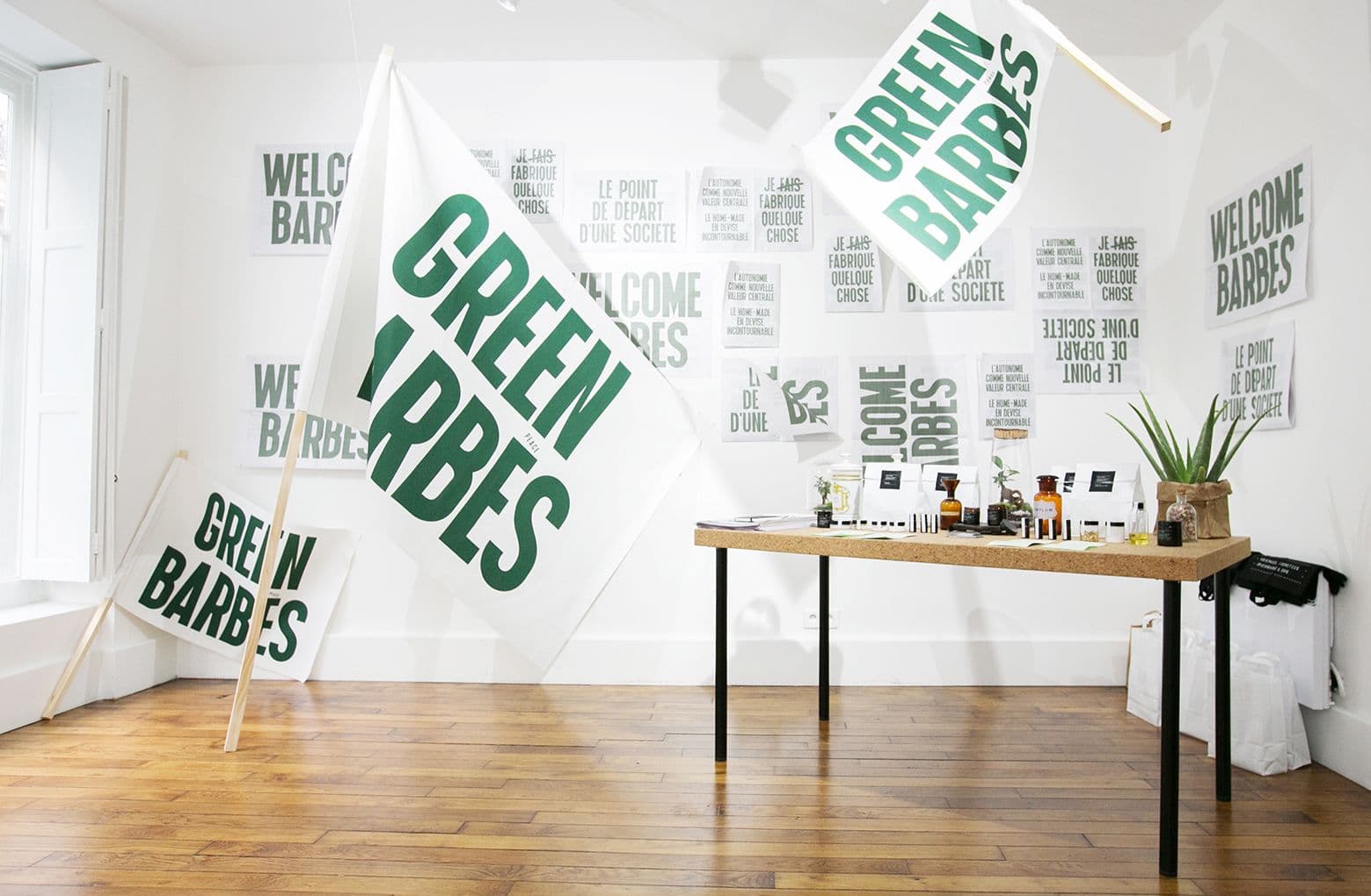 Located in the heart of the Montorgueil district, it offered a weekend-long series of workshops and cocktail parties, on the theme " L.A meets Paris ". For its opening, a Dj set was provided of by French, L.A based musician Soko and Agathe Rouselle. Green Barbes, the eco-friendly cosmetics brand displayed how to concoct at-home beauty treatments. Guests could also enjoy an exhibition by Parisian photographer Alice Moitié and californian artist George Byrne.