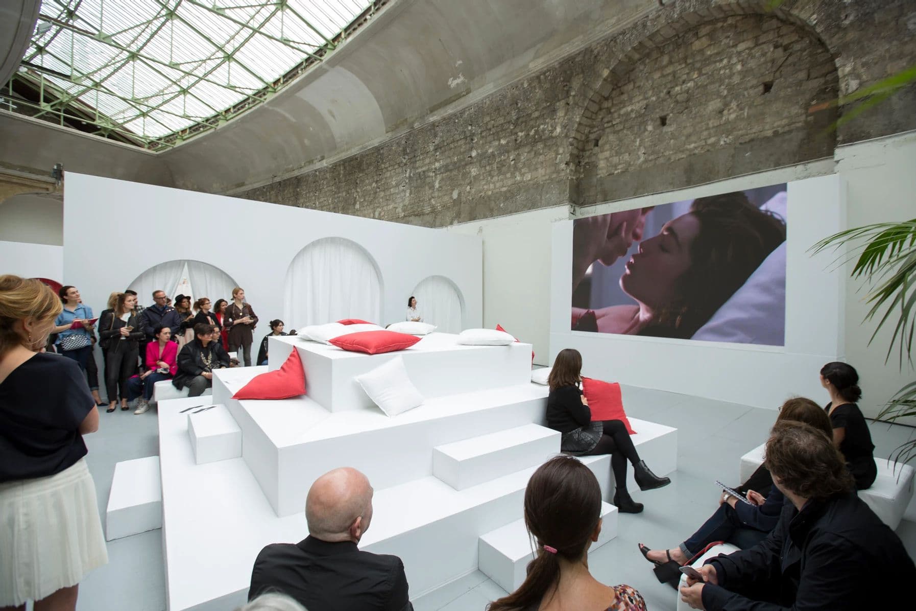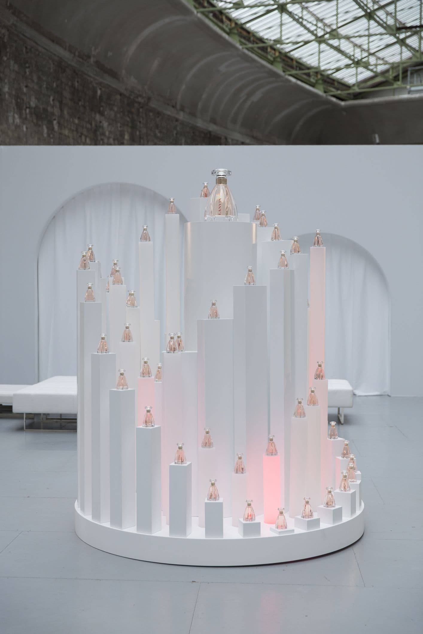 The chosen location was the Galerie Courbe in Le Grand Palais, in the heart of historical Paris. The discovery was embodied as a journey through various rooms, to envision the metaphor of the fragrance as a modern, adventurous woman. Inspired by the settings of Ricardo Bofill's architecture seen in the TV and print campaign, the event set-up displayed a majestic entrance, a Salon des Parfums, a screening room and an elegant lunch area.