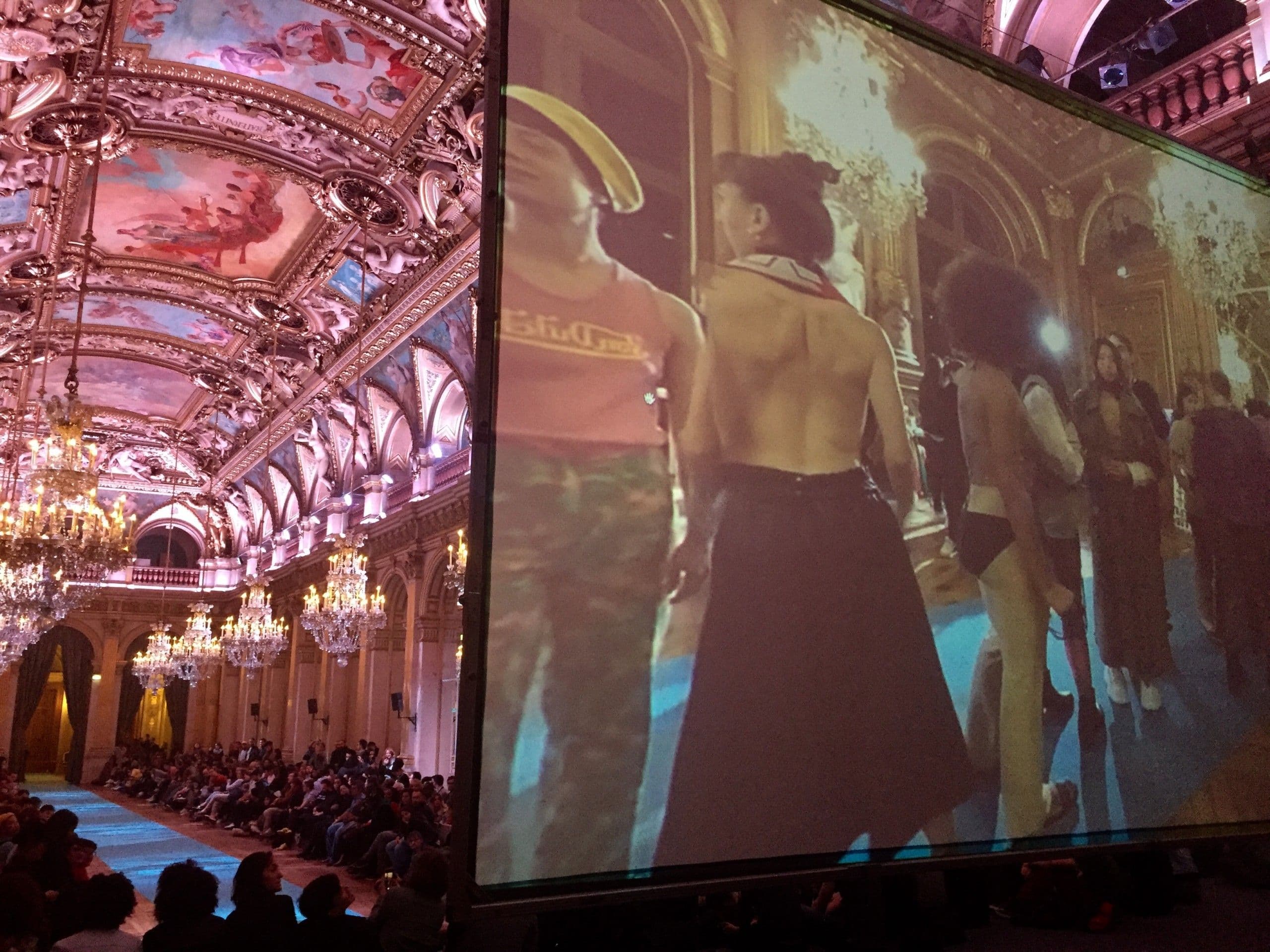 The performance by artist and fashion designer Maroussia Rebecq focused on an alternative view of fashion, sustainability and above all, energy. The collection was made from second-hand clothes and focused on upcycling techniques and street-cast models, mixing all genres, ages and body types. Sound design was crafted by Christophe Chassol, alongside a 360° film broadcasted live all night long. 5 000 guests attended the night that continued non-stop for 8 hours. The collection was sold online the day after the show.