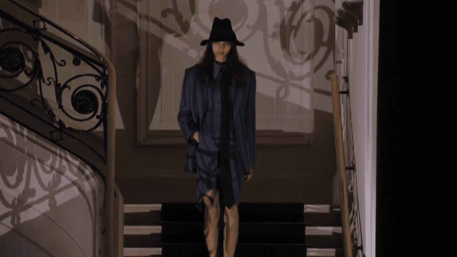 Staged in the Pavillon Cambon and awash in a pale glow, an elegant staircase wove down to the catwalk. A glimpse of the next model’s look could be spotted through the staircase’s decorous railing, creating a breathless sense of excitement for the designs to come. The backdrop highlighted the vintage undertones of the collection, a familiar scene comparable to the most memorable grand entrances depicted in film—dramatic, opulent, and somehow toeing the line between unexpected and customary.