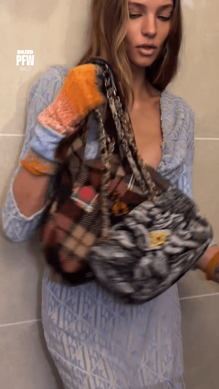 he punk scene possessed Paris Fashion Week, and the culprit was none other than Vivienne Westwood. Creative director Andreas Kronthaler did more than surpass expectations on the Parisian runway: he subverted them entirely. True to Vivienne Westwood’s undying love of the underground, quintessential grunge classics merged with a masterful interplay of trending corporate chic. Embracing contemporary notions of casual suiting, Vivienne Westwood vexed pragmatic fashion enthusiasts with its chaotic yet captivating self-expression. Notably, and in true fashion of Vivienne Westwood’s theatrics, the models had their own version of a reveal on the runway.